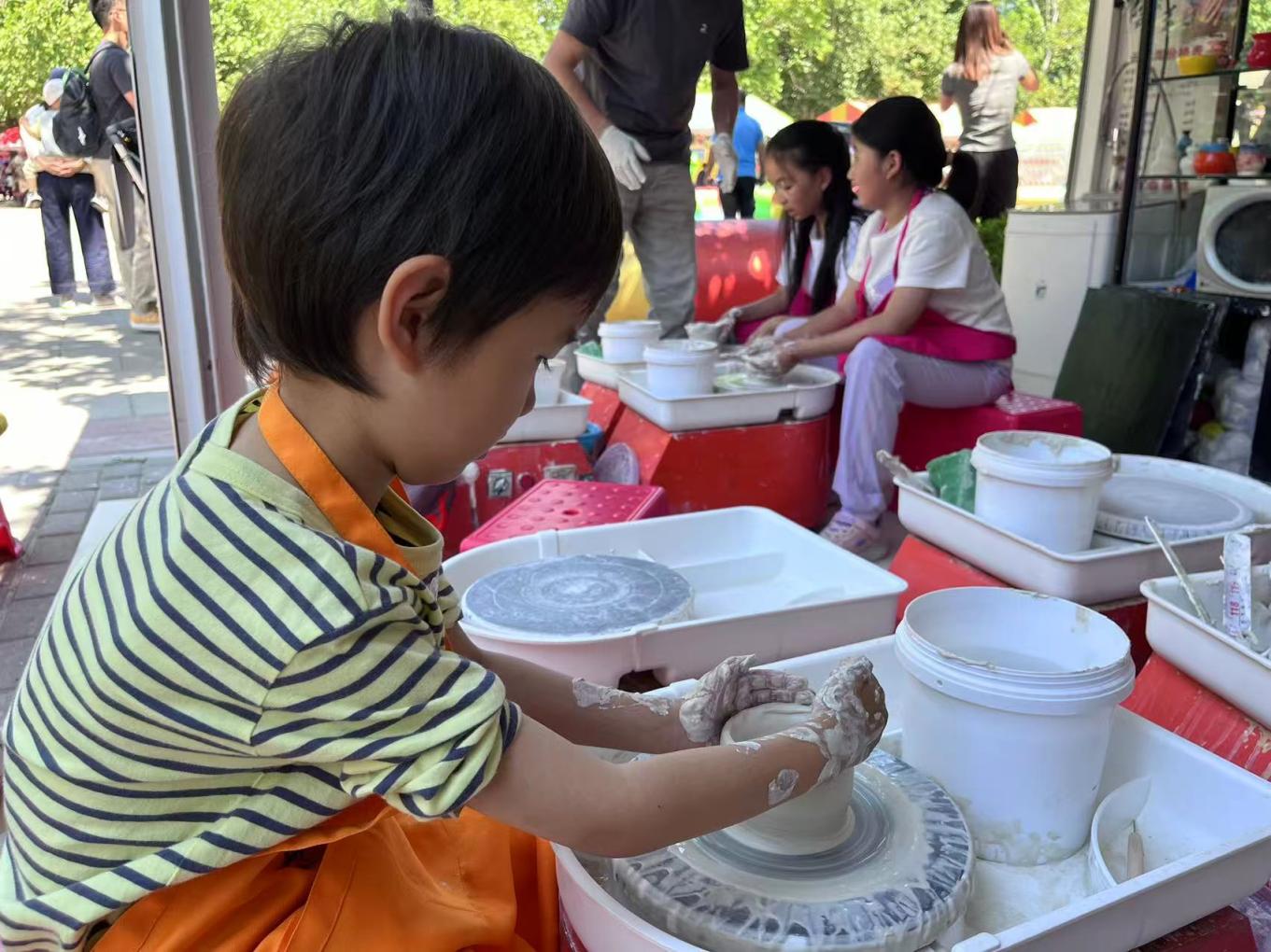 小游客在体验陶艺制作。人民网记者 李楠桦摄